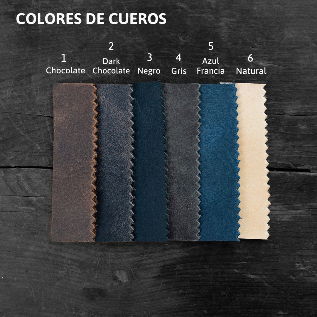 - Los colores pueden variar levemente dentro del tono dependiendo de la partida del cuero