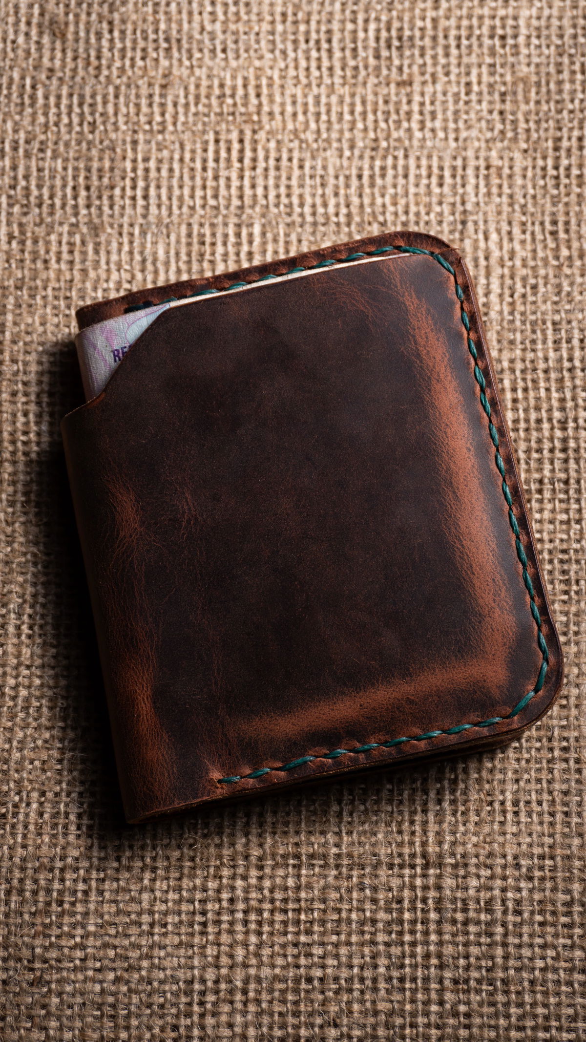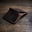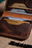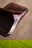 - Cuero lustrado color marrón oscuro.